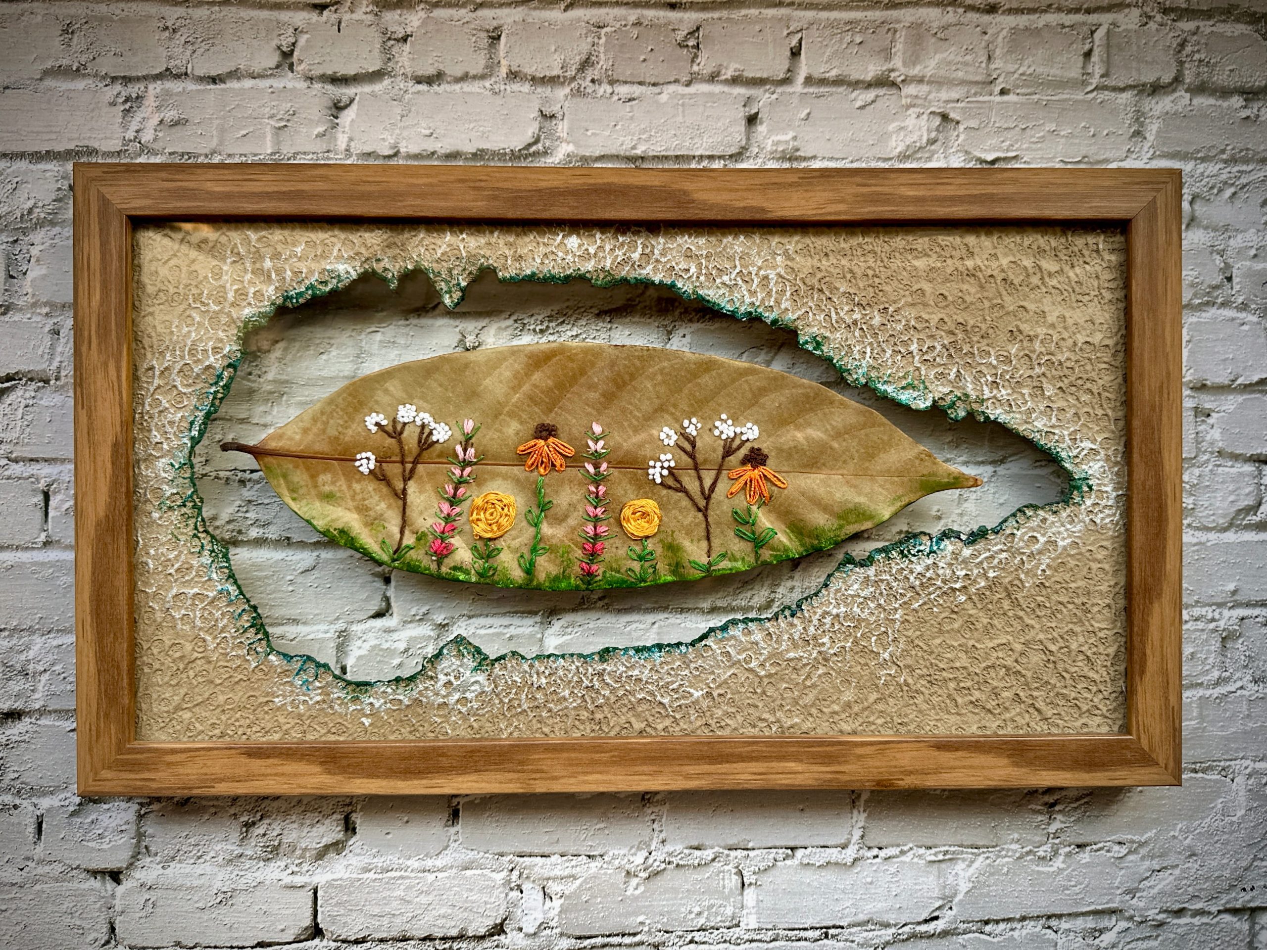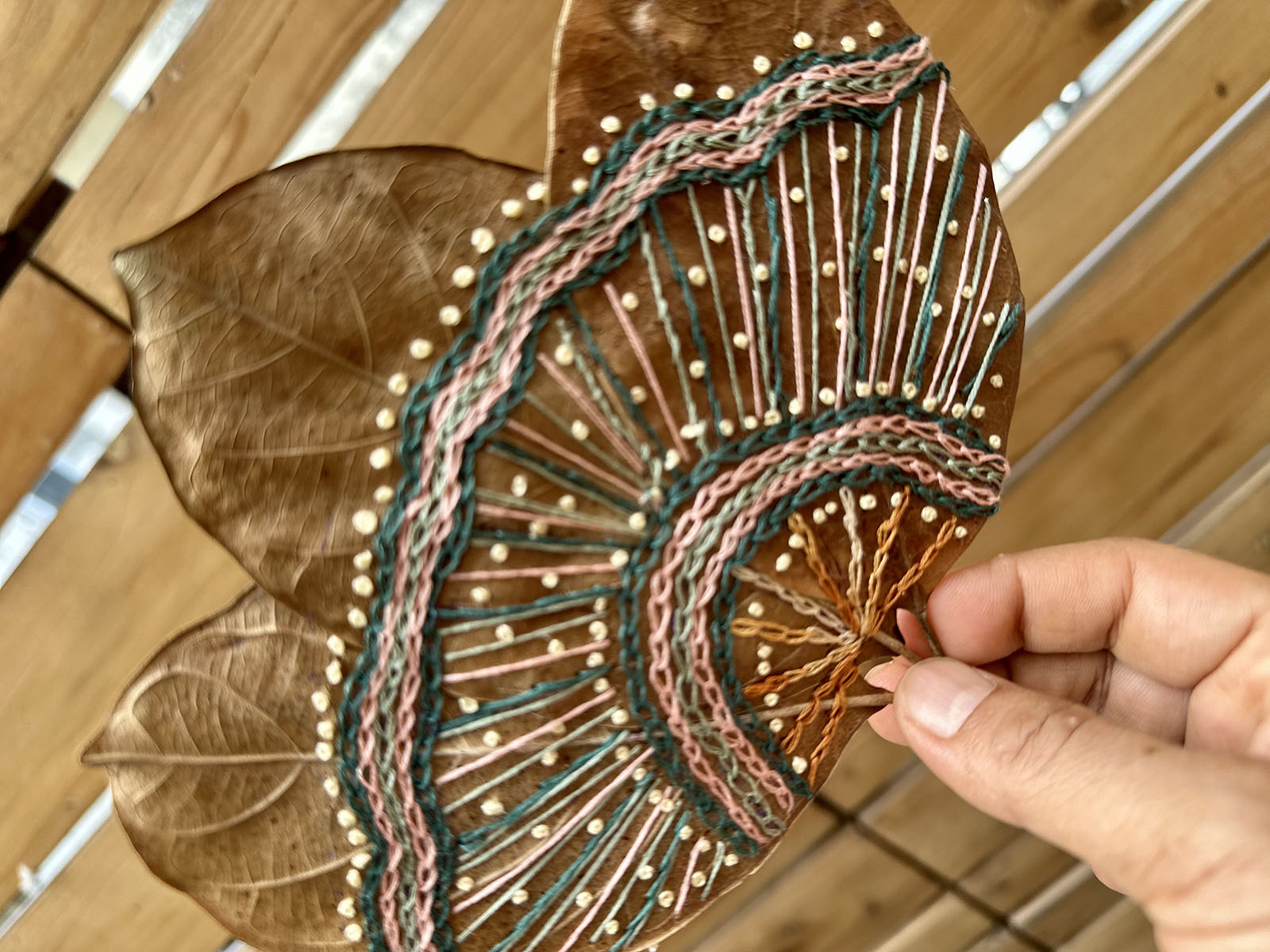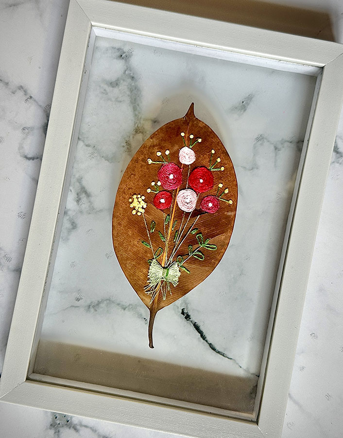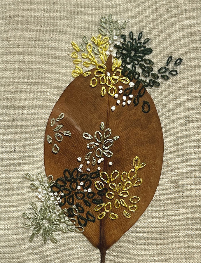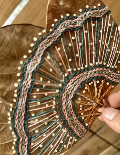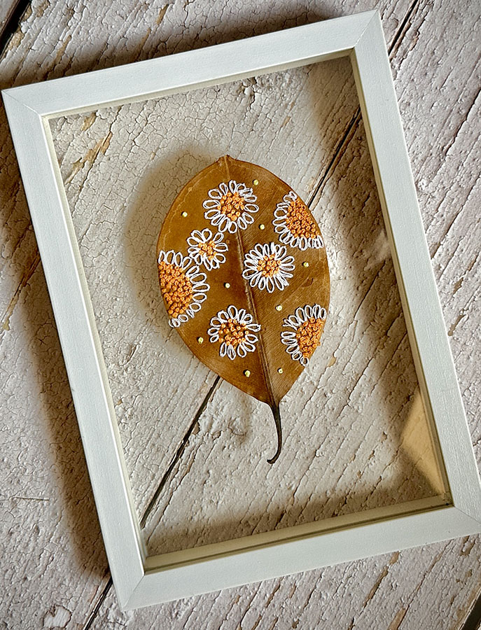 Using a dried leaf as a canvas for embroidery is my way of connecting with nature – of slowing down and noticing. Each leaf, becomes a tiny art piece, reminding us to appreciate the often overlooked beauty around us.